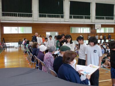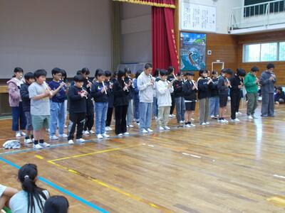 2月25日(水)に「感謝集会」を開催しました。毎朝登校指導をしていただいている民生委員児童委員の皆様、地域の皆様と本校二号棟の男女トイレに洋式トイレを設置していただいた川野純一様へ子どもたちから感謝の気持ちを伝えました。皆様、油津健児をいつも見守っていただきありがとうございます。