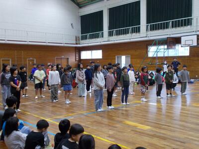 2月10日(火)に、4年生を対象に「日本のひなた宮崎 国スポ・障スポ」大会イメージソングダンス出前授業が行われました。日南市で開催されるレスリング競技をイメージしてグループごとにオリジナルの振り付けを考えました。授業の終わりには、曲に合わせて4年生全員でオリジナルダンスを笑顔いっぱいで踊りました。