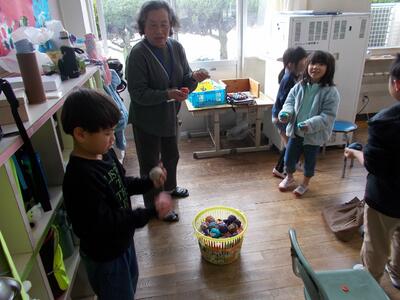 3月6日(金)、1年生の生活科の授業に10名のゲストティーチャー(GT)をお迎えして「昔の遊び」体験をしました。お忙しい中ご協力いただきましたGTの皆様、いつもありがとうございます。