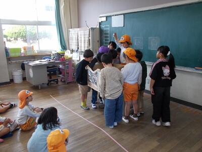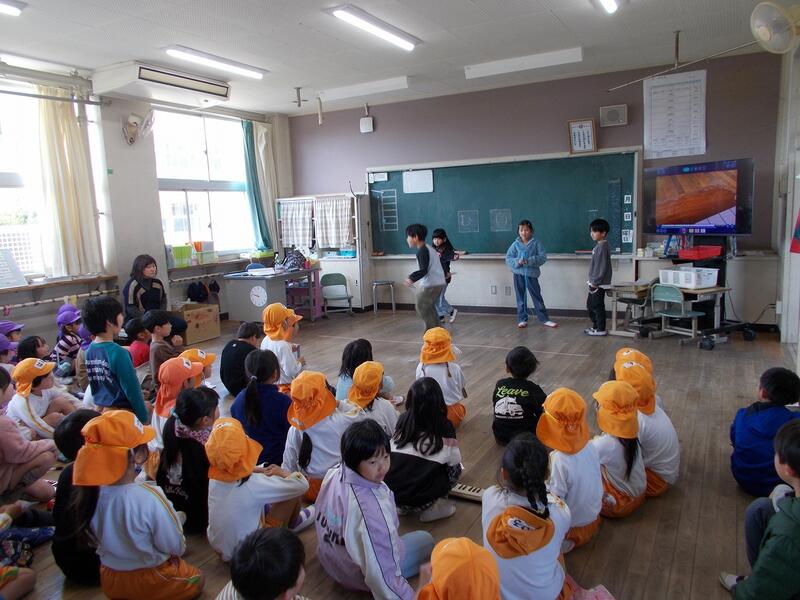 3月10日(火)に幼保小連携の一環で、ひなもり保育園児と油津恵愛幼稚園児との交流会を実施しました。1年生が、おにいちゃん、おねえちゃんになって、いろいろな遊びを一緒にしました。