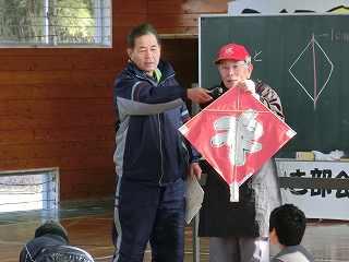 凧作りがありました。子どもたちはみんな熱心に凧作り名人か
