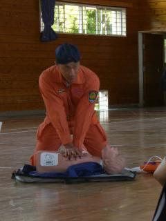 PTA副会長の水元さん(消防署員)に指導いただいて、