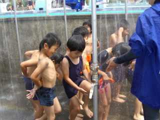 の水泳とあって、1年生の子どもたちの歓声が上がっていま