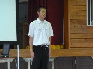 西郷さんの鹿児島弁も上手でした。中学生の意見発表は、部
