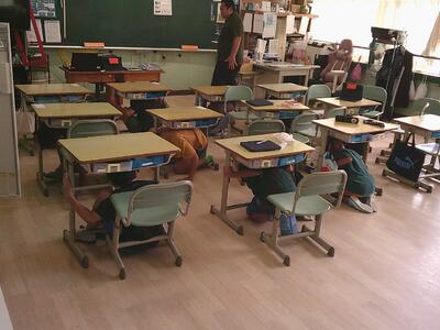 子ども達は机の下に素早く頭を隠して、命を守る行動をとることができました。