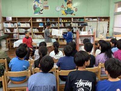 本を借りに来ていた2年生も、本を探す手を止めてじっと聞き入り、図書室は静かなワクワク感に包まれていました。