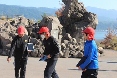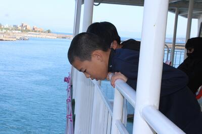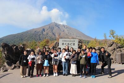 その後、鹿児島市内からフェリーで桜島へ渡り、有村溶岩展望所で桜島の土地の様子について学びました。バスの中では、ガイドさんのお話やゲームを楽しみながら、無事に学校へ帰着しました。