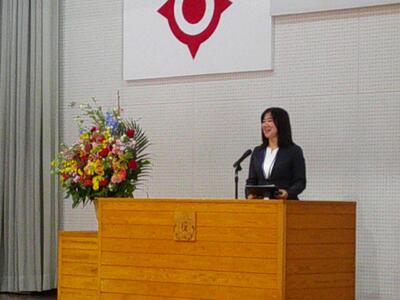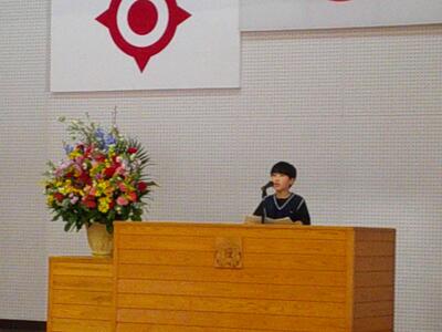 児童代表の話では、6年生の白石ゆいなさんが新年の抱負を発表しました。