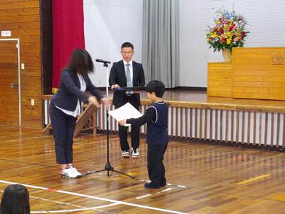 はじめに、各学年の代表児童に、校長先生より修了証が手渡されました。