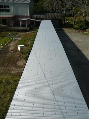台風被害の渡り廊下屋根補修完了