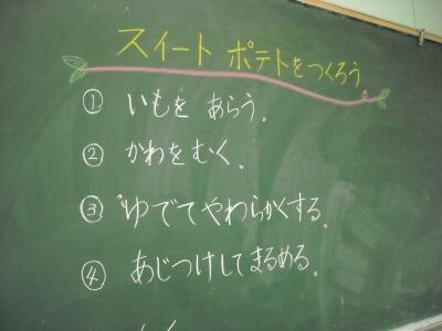 今日は1年生が「おいもパーティー」をしました。自分たちで育てて収穫したおいもを使って美味しい「スィートポテト」が出来上がりました。