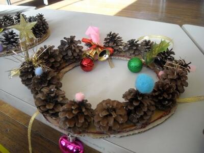 1年生の作った「リース」が、素晴らしい出来映えになりました。子どもたちはみんな早くもって帰りたいと言っています。