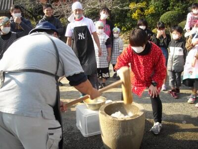 本日、100名をこえる児童・保護者の皆さんで「もちつき会」を実施しました。もち米は5年生が一年間かけて育てたものです。各学年ごとに分かれて、もちつきやお餅をきれいに丸める作業をした後で、全員で一緒に会食をしました。保護者の皆さんが準備されたぜんざいも、とても美味しく頂きました。