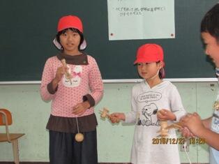 ・ これは、けんだまです。見事、一番難しい所に入れた児童もいました。