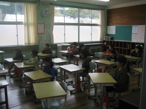 児童は各学級で授業中でしたが、突然の地震にも机の下に避難し落ち着いて身の安全を守る行動ができました。児童や校内施設の被害もありませんでした。