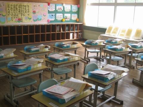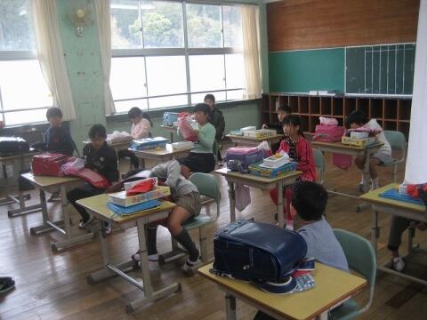 昨日入学した1年生。今日からさっそく教室でお勉強が始まりました。先生の言うことがちゃんと聞けて、とてもいい子ども達です。ランドセルもきちんと置けています。