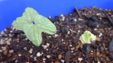 1年生が5月10日に植えた朝顔が発芽しました。これから、毎日、水やりと