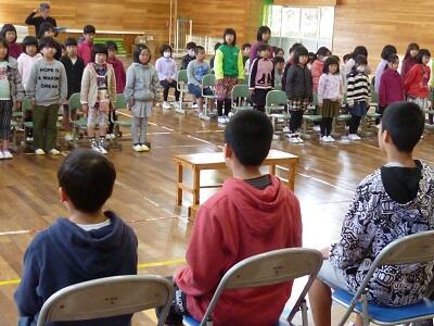 ・23日の卒業式に向けて、今日は全体練習を行いました。緊張感の中、子供たちは歌や言葉を頑張ってくれました。