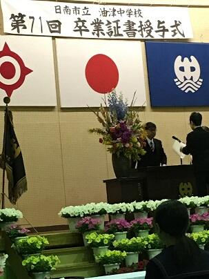 ・先日は中学校の卒業式に行ってきました。厳粛な中、男女各32名、合計64名が巣立っていきました。今まで以上に広がる人間関係や行動範囲に不安を抱いている卒業生もいることと思います。より「現実」を感ずるであろうこれから先の人生で、それぞれのもっている可能性を少しでも発揮できるよう心から祈っています。
