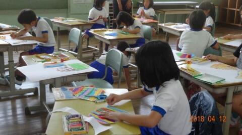 油津小学校の4年生が、桜ヶ丘小に来校し交流会を実施しました。両校の児童が、一緒になってグループを作って活動を行いました。まずは、自己紹介ゲーム。好きな食べ物や行ってみたい国を言ったりして名前を紹介し合っていました。だんだんとうち解けた後に日南キューブの積み上げ競争を実施。どのグループも協力して積み上げていました。5月には、青島少年自然の家で2泊3日の研修会を行います。その時の再会を楽しみに交流会は終了しました。