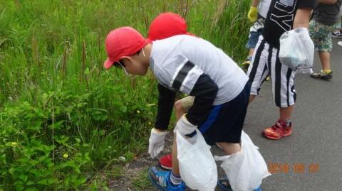 今日は全校児童で地域のごみ拾いを行いました。普段登下校に使っている