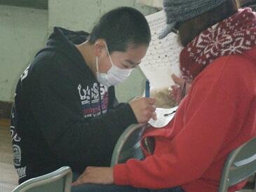 ↓職員と囲碁?将棋?の対決をしている児童もいました。