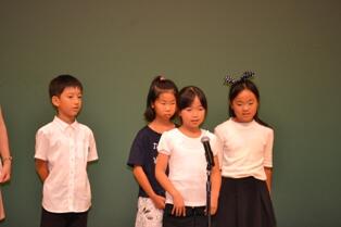 最後に握手をして舞台を降りました。4名の子どもたちにとっては、どきどきの体験だったようですが、練習を頑張り、その成果を大勢の方々の前で発揮し、たくさんの拍手をいただくというとてもいい経験になったと思います。引率して下さった保護者の皆さん、ご苦労様でした。これからも、機会を見つけて子どもたちをいろんなことにチャレンジさせましょう。