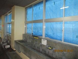 ・ 今、校舎は改修中です。校舎の周囲はすべて足場が組まれ、廊下側はまだシートで囲まれています。囲まれているおかげで?暗いですが、少し「ひやっ」とします。あと、一月半ほどで完成です。