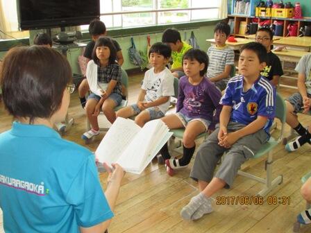 ・ 今日は朝の時間に「教師による読み聞かせ」をしました。本校では、主体的に読書に取り組む児童を育てるために、様々な読書推進の取組を行っています。この「教師による読み聞かせ」も、その一つで、定期的に教師が交代制で行っている取組です。どの学級も静寂の中、教師の読み聞かせに聞き入っている児童の姿がありました。↓ こんな取組を行っています。