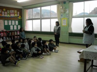 眩しいくらいの床の明るさに子どもたちも大喜びでした。朝一の読み聞かせの時間も集中してお話を聞いていました。