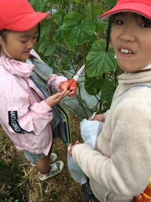 3年生の社会科の学習「農家ではたらく人々」で、北郷にあるきゅうり農家の木佐貫さんのハウスに行ってきました。きゅうりを育てる上での工夫や苦労を学びながら、実際にきゅうりの収穫体験もさせて頂きました。
