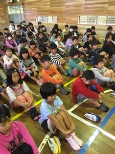・ また、終業式に限らずいろんな集会時の態度もよくなっています。話をする児童はいません。姿勢もよくなりつつあります。