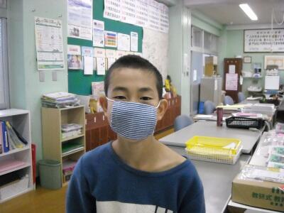自分用の手作りのマスクを見せてくれました。今の季節にぴったり。かっこいいよ。