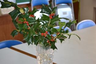 ・ 庭に色づいているのを持ってきて花瓶に入れました。クリスマスの飾りにもあるホーリー、反応をしてくれた職員も数名いました。もうすぐクリスマスです。