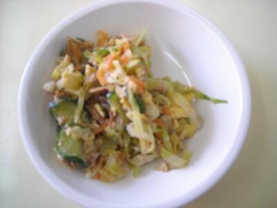 今日の給食には、地産地消メニューとして、「うみっこ節サラダ」が入っていました。