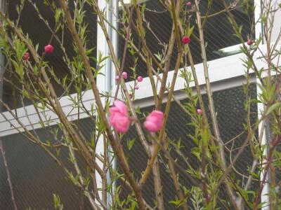 職員玄関横に植えてある梅の木にも紅色の花が咲き始めました。