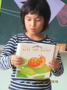 ・ 今日の昼休み時間には、図書委員会が中心となって、ミニビブリオバトルをやってくれました。ビブリオバトルというのは、簡単に言うと本の紹介をし合って、事後にそれを聞いていた人に「どの本が一番読みたくなったか」を投票してもらい、チャンプ本を決めるというものです。今日は下学年の部のミニビブリオバトルで、学年の代表児童三名が自分の推薦する本を紹介し、投票でチャンプ本を決めました。写真は代表児童です。