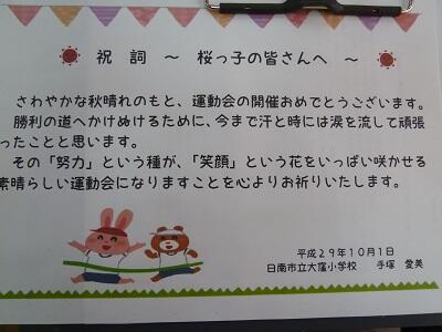 ・ 運動会に向けてのメッセージが、一昨年いた職員から届きました。何かあるたびに桜ヶ丘小のことを気にかけて連絡をくれる職員です。ありがたいものです。