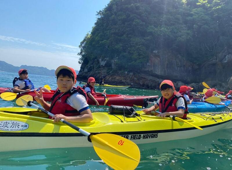 5・6年生は、栄松ビーチで「シーカヤック体験」をしました。