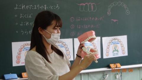 6月4日~10日は歯と口の健康週間です。3年生の教室で歯磨きのしかたについて