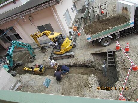 ・ まだまだ続いています。かなり大変そうです。台風も近づいているし、工期大丈夫かな?と思っています。予定では9/29までです。