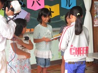 ・ 見事チャンプ本に輝いた児童の表彰の様子です。