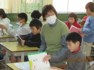 ・ 2時間目、算数の授業です。今日、明日は担任は研修(出張)のため、日頃から算数を担任と二人で指導している教頭先生が一人で指導していました。みんな集中して取り組んでいるようでした。