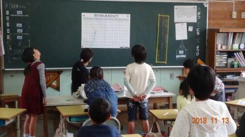 この時期になると2年生教室からかけ算九九を唱える声が聞こえてきます。どの子も、すべてクリアーしようと一生懸命です。今日クラスで初めて全て合格できたお友達がいます。まだ合格出来ていない人もこれから頑張っていきます。