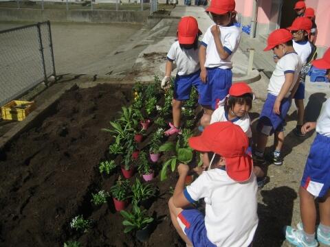 学級・学校園がきれいになりました。みんなで秋も深まり花壇に植栽を行いました。花が咲いている学校いいですね。気持ちがほのぼのします。きれいに咲いてくれるのが楽しみです。