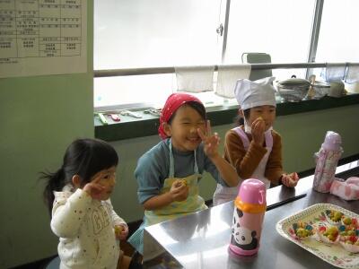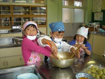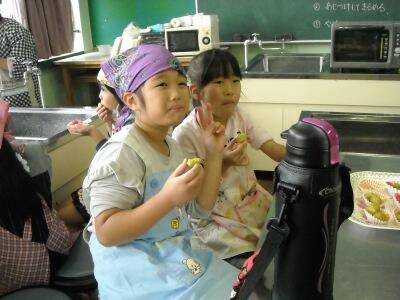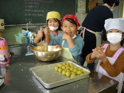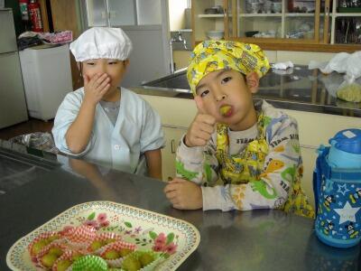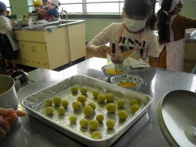今日は1年生が「おいもパーティー」をしました。自分たちで育てて収穫したおいもを使って美味しい「スィートポテト」が出来上がりました。