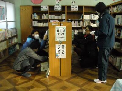 学校図書館のバーコード化に伴う準備が進んでいます。日南市内の学校図書司書の方々がバーコードの貼り付けや図書の整理にかなりの回数来校していただいています。昨日は、放課後、教職員で本をあいうえお順に整理する作業をしました。