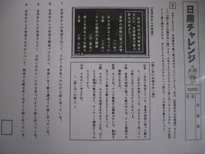 本校では、日南市教育委員会が作成した「日南チャレンジ」での学力向上の取組を継続しています。今日は、職員研修の時間に、問題を解いて、この問題を児童が正答できるための具体的な手立てについて考えました。個人で考えたことをペアやグループで話し合うことで指導方法を深めることができました。