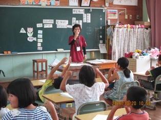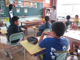 ・ 6時間目の外国語活動の様子です。ゲーム形式の活動も取り入れ、大きな声で英語を話していました。黒板も、写真で分かるように大変賑やかでした。
