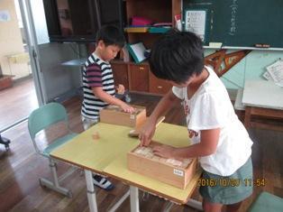 ・ 雨が降っていたため昼休みに校舎内をまわると、6年の女子がミシンを使って縫い物をしていました。ナップザック?を作っているそうで、黙々と作業をしていました。出来たものを修学旅行で使うのではないのでしょうか。